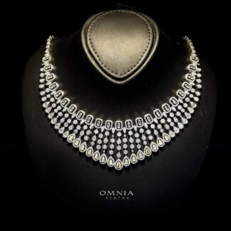 Omnia Layina White Long chain Full Set Accessories in High Quality Zircon Stone Rhodium Plated (17cm only available in KSA)