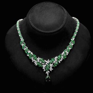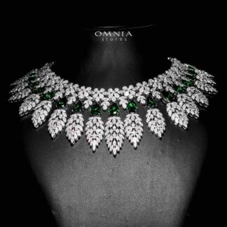 Omnia Duha Green Long chain Full Accessories in High Quality Zircon Stone Rhodium Plated