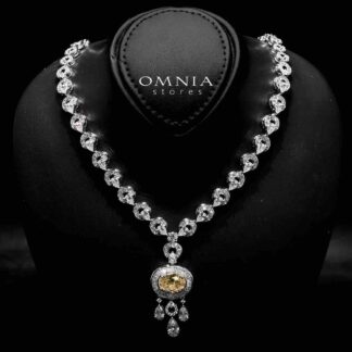 Omnia Duha Yellow Long chain Full Accessories in High Quality Zircon Stone Rhodium Plated