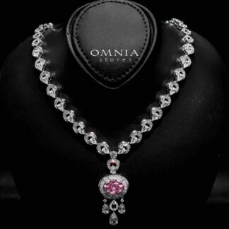Omnia Nareen Pink Bridal Full Set in High Quality Zircon Stone Rhodium Plated