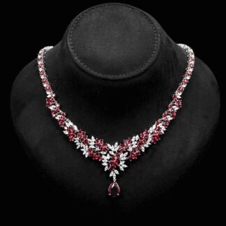 Omnia Nourah Red Luxury Bridal Full Set in High Quality Zircon Stone in Rhodium Plated