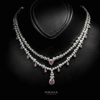 Omnia Hayah Pink Bridal Full Set in High Quality Zircon Stone in Rhodium Plated