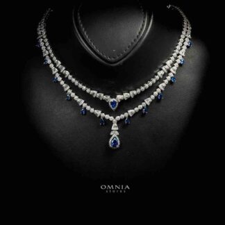 Omnia Esra Blue Full Set in High Quality Zircon Stone Rhodium Plated