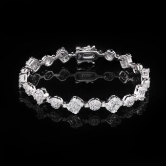 Omnia Luxury Simulated Diamond Mesh Bracelet in 925 Pure Silver with High Quality Simulated Diamonds