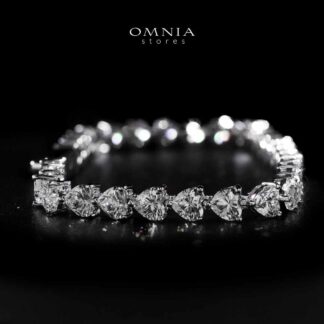 Omnia Emma White Silver Heart Tennis Bracelet in 925 Silver with High-Quality Moissanite Stones