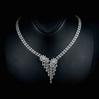 Omnia Lamara Floral-Inspired Tennis Set in 92.5 Silver with High Quality Iced Cut Stones