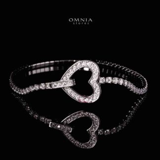 Omnia Azza Heart White Silver Bracelet With High Quality Lab Crafted Stones In 925 Silver