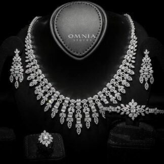 Omnia Saphira White Luxury Bridal Full Set in High Quality Zircon Stone Rhodium Plated (only availalbe in KSA)