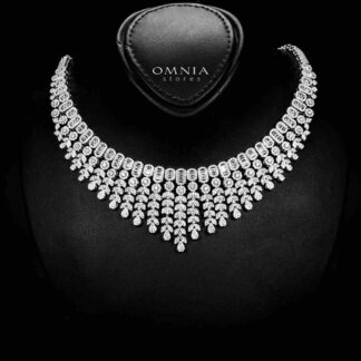 Omnia Ailyn Luxury White Choker Bridal Full Set in High Quality Zircon Stone Rhodium Plated