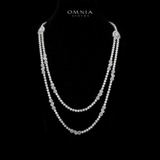 Omnia Golden Clove Long Chain Full Set with High-Quality Simulated Diamonds Gold Plated 100cm