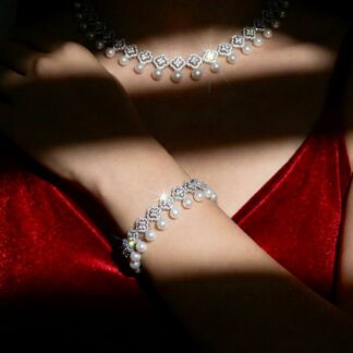 Omnia Ashley Pearl White Bridal Full Set in 925 Silver with High Quality Simulated Diamonds