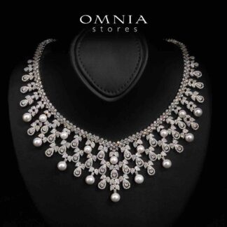 Omnia Reema Pure White Luxury Bridal Full Set in High Quality Zircon Stone Rhodium Plated