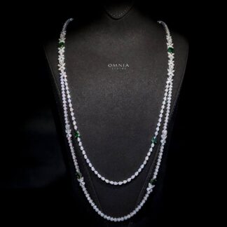 Omnia Yaza Bridal Green Long chain Set High Quality Zircon Stone In Rhodium Plated
