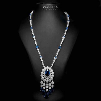 Omnia Aleya Blue Bridal Full Long chain Set in High Quality Simulated Diamonds Rhodium Plated