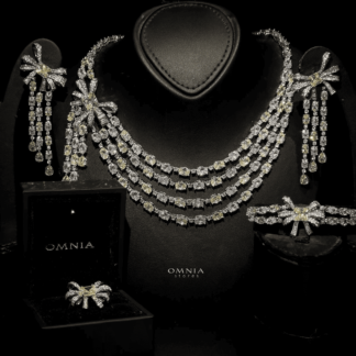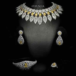 Omnia Nazaha Bridal Full Set in Rhodium Plated with High Quality White and Yellow Zircon Stones
