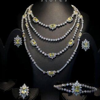 Omnia Ethereal Yellow Luxury Bridal Full Set in High Quality Rhodium Plated Zircon Stones