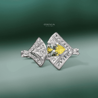 Omnia Trinity Yellow Luxury Bridal Full Set in High Quality Zircon Stone in Rhodium Plated