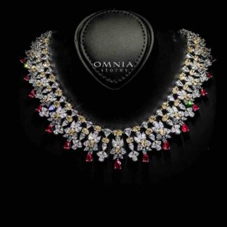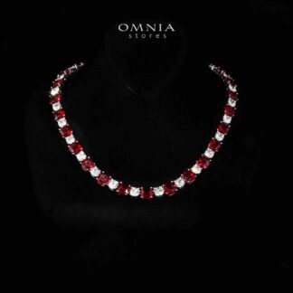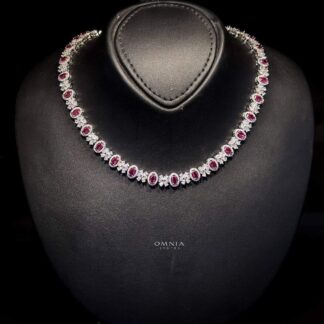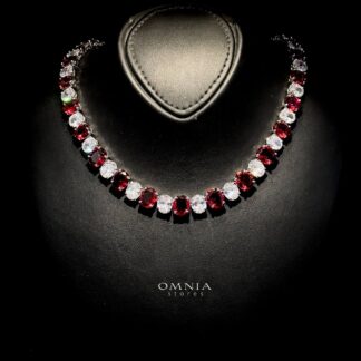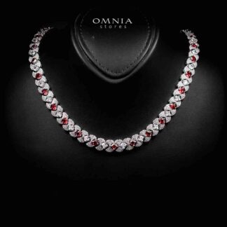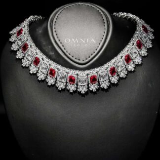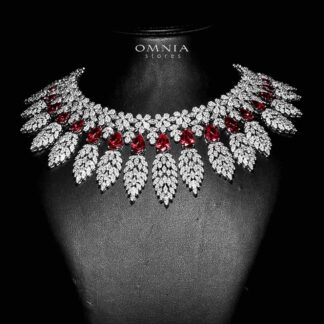 Omnia Avelia Red and White Luxury Bridal Choker Full Set in High Quality Rhodium Plated Zircon Stones