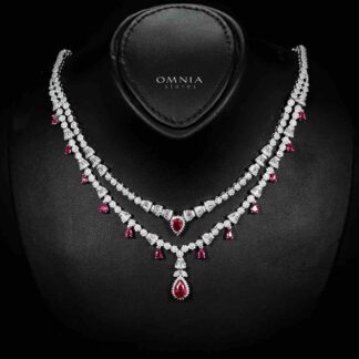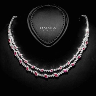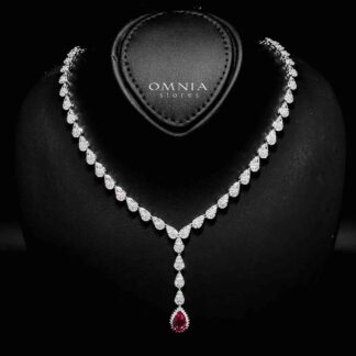 Omnia Trisha Red Full set Accessories in High Quality Zircon Stone in Rhodium Plated