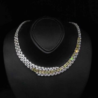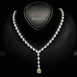 Omnia Duha Yellow Long chain Full Accessories in High Quality Zircon Stone Rhodium Plated