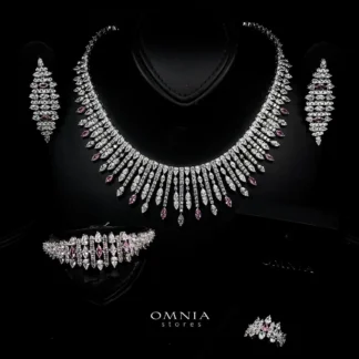 Omnia Nisrine Pink Bridal Full Set in High Quality Zircon Stone in Rhodium Plated