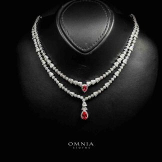 Omnia Esra Red Full Set in High Quality Zircon Stone Rhodium Plated