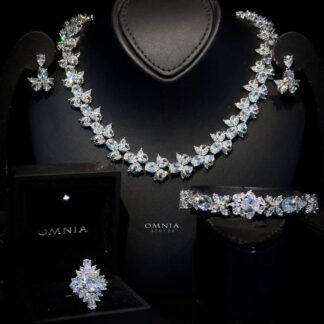 Omnia Nareen White Luxury Bridal Full Set in High Quality Zircon Stone Rhodium Plated