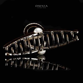 Omnia Ghazwa Pearl Light Gold Hair Clip in High Quality Zircon Stone In Rhodium Plated