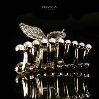 Omnia Ruwayda Pearl Butterfly Light Gold Hair Clip in High Quality Zircon Stone In Rhodium Plated