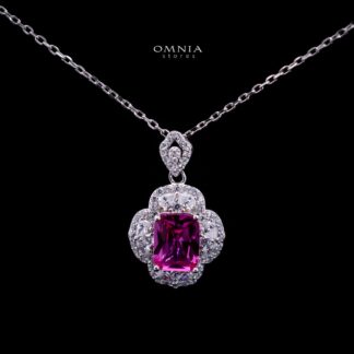 Omnia Raeya Purple Silver Pendant Necklace in 925 Silver with High Quality Simulated Diamonds