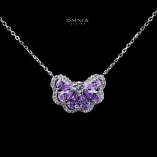 Omnia Purple Bloom Necklace In 92.5 Silver with High Quality Simulated Diamonds