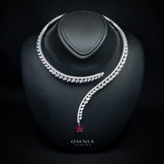 Omnia Avelia Red and White Luxury Bridal Choker Full Set in High Quality Rhodium Plated Zircon Stones