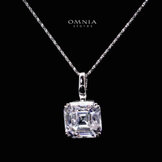 Omnia Tajreed Pendant Necklace 925 Silver in High Quality White Moissanite Stones