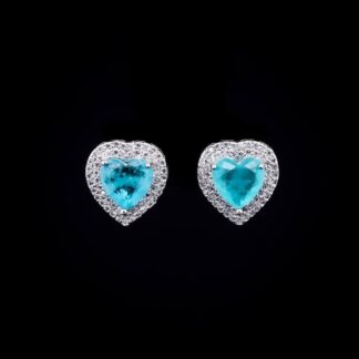 Omnia Serena Turquoise Heart-Shaped Stud Earrings with High-Quality Zircon Stones in Rhodium Plated