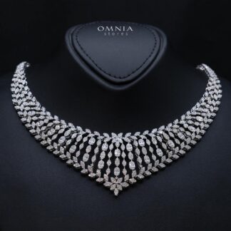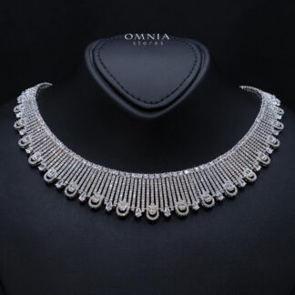 Omnia Kaila Luxury Bridal White Choker Full Set in High Quality Zircon Stone Rhodium Plated
