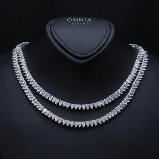 Omnia Reyna White Luxury Bridal Long Chain Full Set in High Quality Zircon Stone Rhodium Plated
