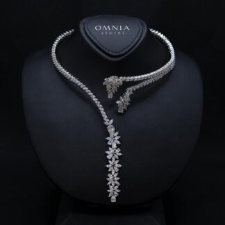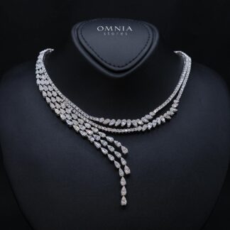 Omnia Lisa White Luxury Bridal Long Chain Full Set in High Quality Zircon Stone Rhodium Plated