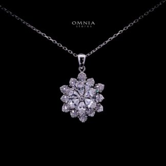 Omnia Damiyah White Floral Silver Pendant Necklace in 925 Silver with High Quality Simulated Diamonds
