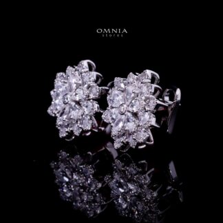 Omnia Ziara White Floral Earrings With High Quality Certified Lab Crafted Stones In 925 Silver