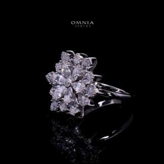 Omnia Damiyah White Floral Silver Ring in 925 Silver with High Quality Simulated Diamonds