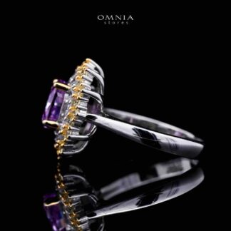 Omnia Aaliah White and Pueple Ring With High Quality Certified Lab Crafted Stones In 925 Silver