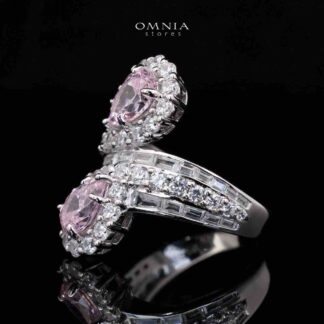 Omnia Safina Pink and White Silver Ring With High Quality Certified Lab Crafted Stones In 925 Silver