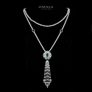 Omnia Duha Green Long chain Full Accessories in High Quality Zircon Stone Rhodium Plated