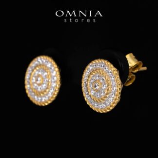 Omnia Ismah Golden Classic Stud Earrings in 925 Silver with High-Quality White Simulated Diamonds