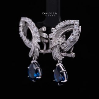 Omnia Celeste Bow Design Earrings in 925 Silver with High-Quality Simulated Diamonds and Elegant Dangling Accents