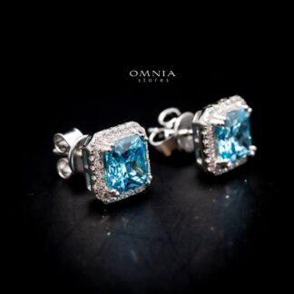 Omnia Firza Sky Blue Square Earrings With High Quality Simulated Diamonds In 925 Silver