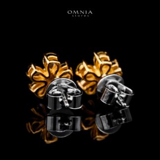 Omnia Raneem Golden Floral Stud Earrings in High-Quality Zircon Stones Rhodium-Plated Finish