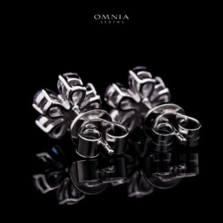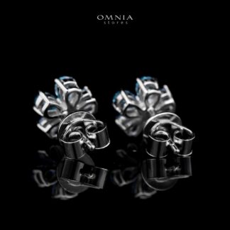 Omnia Aqua Flower Stud Earrings In 92.5 Silver with High Quality Simulated Diamonds