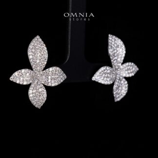 Omnia Raneem Pure White Floral Stud Earrings in High-Quality Zircon Stones in a Rhodium Plated Finish