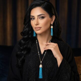 Omnia Ghadir Full Set with Fresh water Pearls and Pink Tassel Accents in 92.5 Silver High Quality Simulated Diamonds